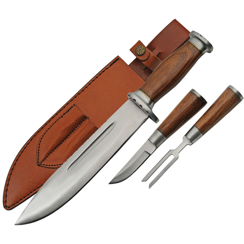 Sett med stor og liten kniv, og en rustikk gaffel.