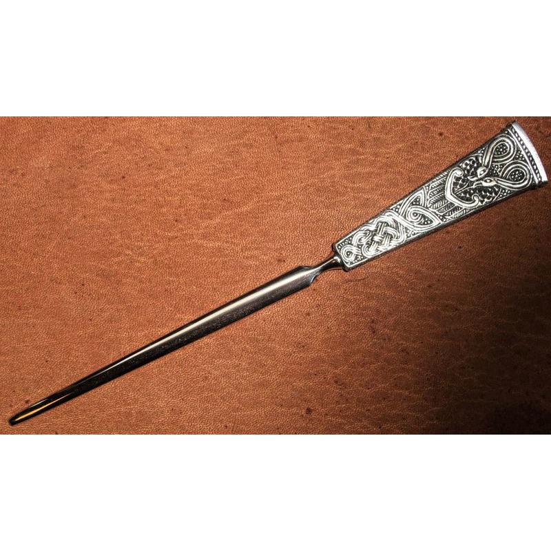 Brevåpner i tinn, med et klassisk keltisk svane og knutemotiv
