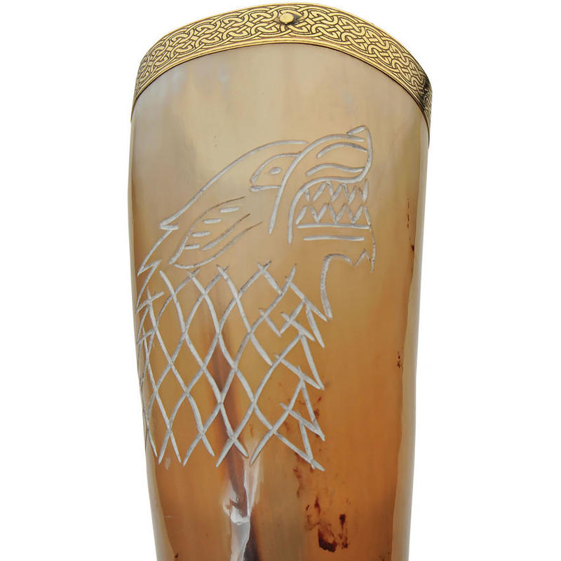 Elegant drikkehorn laget av bøffelhorn.