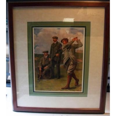 Reproduksjon av et gammelt golfmotiv, flott innrammet.
