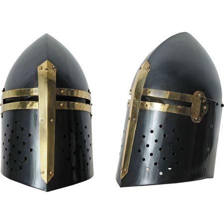 Dekorativ, og funksjonell tønnehjelm i klassisk (1300talls) stil.