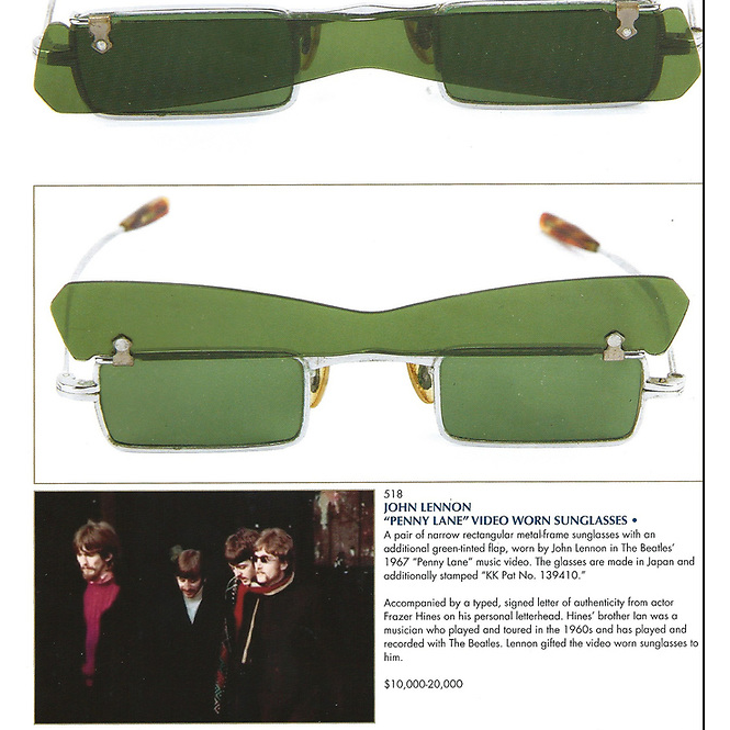 Solbriller av typen brukt av John Lennon i musikkvideoen til Penny Lane fra 1967.