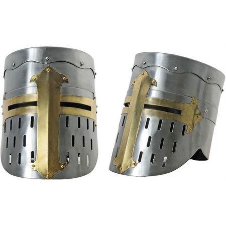 Replika av en såkalt "Great Helmet" eller tønnehjelm som ble populær blant korsfarere på 1200 tallet. Hjelmen kan anvendes til reenactment etc.