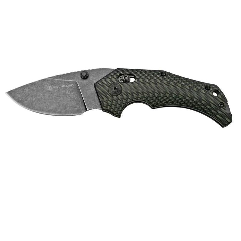 The Willumsen Red-E is a modern pocket EDC pocket knife designed by Mikkel Willumsen himself. Many of Willumsen's designs are derived from sea shapes. The Red E is no exception. The handle is enhanced with a stunning pattern which ensures you have a lot of grip over the knife. You can easily open the knife with the thumb stud. When opened an axis lock will lock the blade. This is a solid one-handed lock.