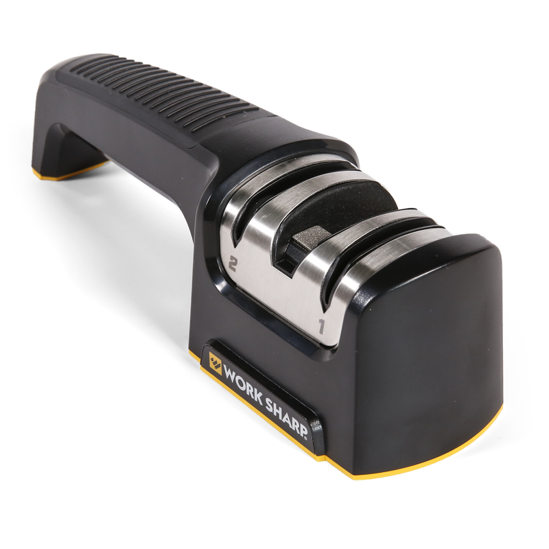 Work Sharp PTS knivsliper er en håndholdt sliper som bruker diamant- og keramiske slipemidler til å slipe kjøkkenknivene raskt og enkelt.