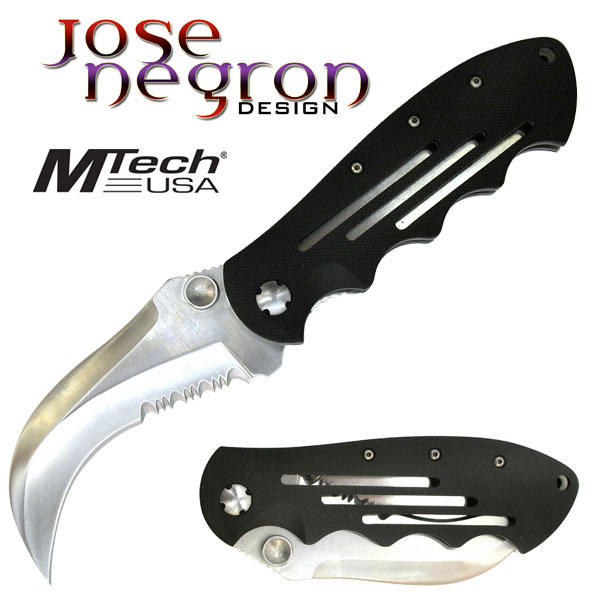 Karakterisktisk hawkbilllfoldekniv designet av Jose Negron